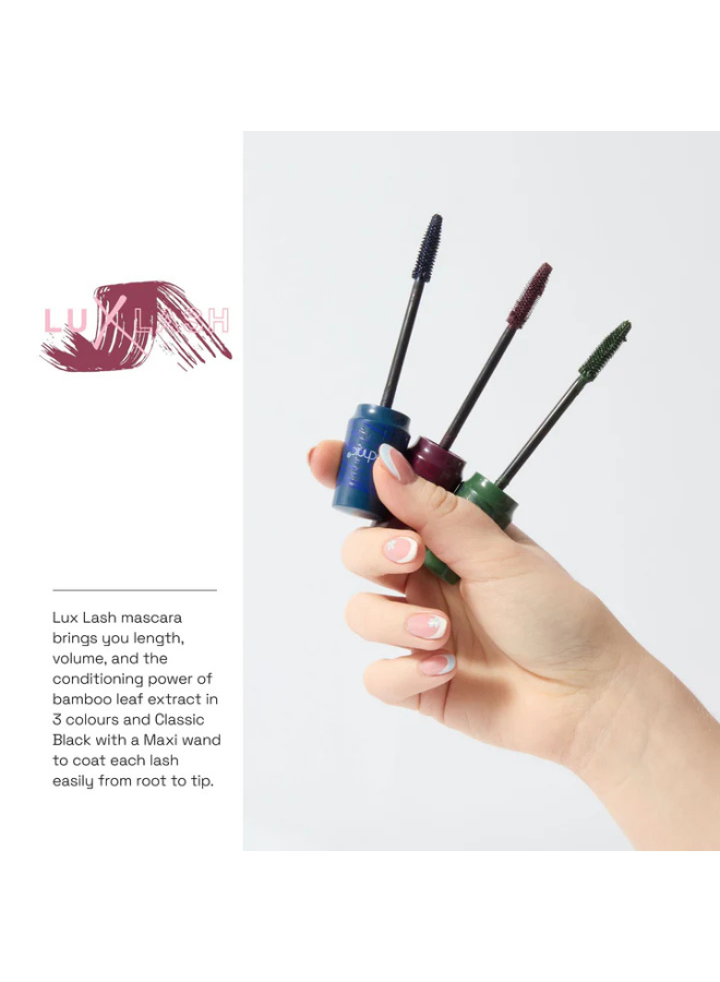 Lux Lash mascara brings you length, volume, and the conditioning power of bamboo leaf extract in four shades with a Maxi wand to coat each lash easily from root to tip.